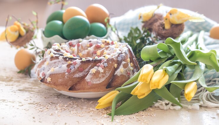 - Готовый кулич украсить глазурью.