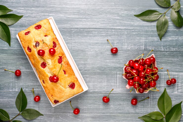 - В форму следует вылить половину теста, после чего выложить слой вишни и накрыть его оставшимся тестом, располагая вишню в центре.