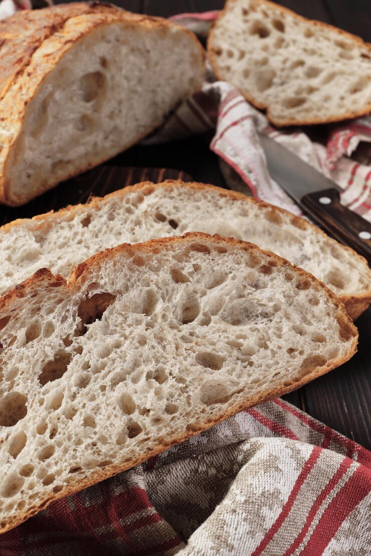 В итоге получается очень вкусная чиабатта с нежной сердцевиной, большими порами и хрустящей корочкой.