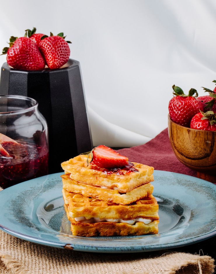 - Клубнику следует поместить внутрь. Формочки нужно поставить в духовку на 10-15 минут, чтобы блинчики подрумянились и стали хрустящими.
