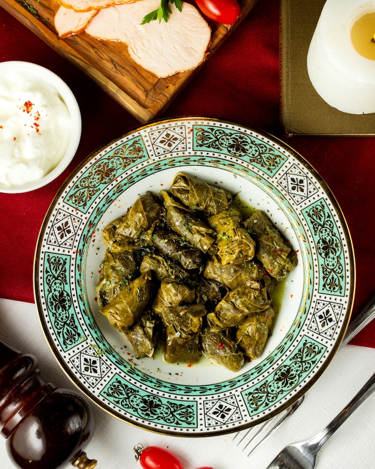 Традиционно к долме предлагают соус на основе кисломолочных ингредиентов, включающий чеснок и зелень.