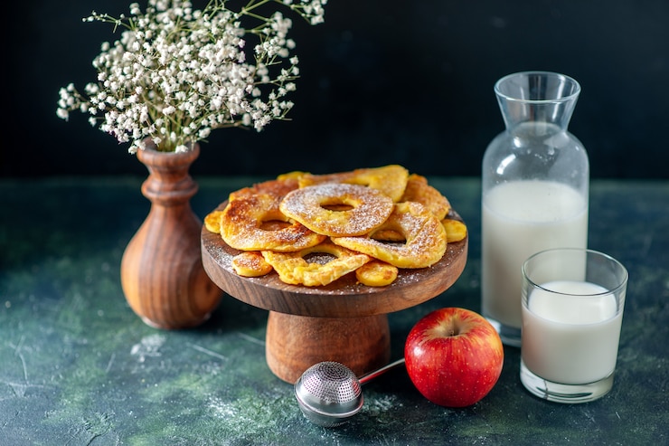 Готовые оладьи рекомендуется посыпать сахарной пудрой. Их можно подавать со сметаной, подслащенной сахаром. Также подойдут повидло, варенье или мед.