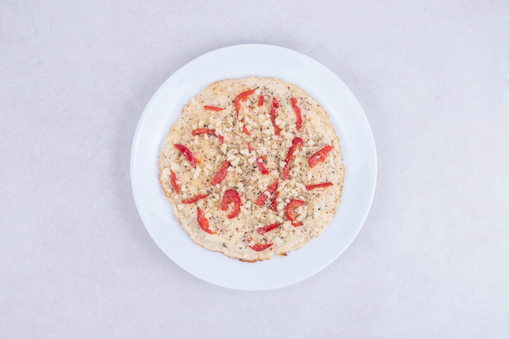 - На каждую лепешку выкладывают нарезанные помидоры, затем посыпают петрушкой и накрывают второй половиной, формируя сложенный пит.