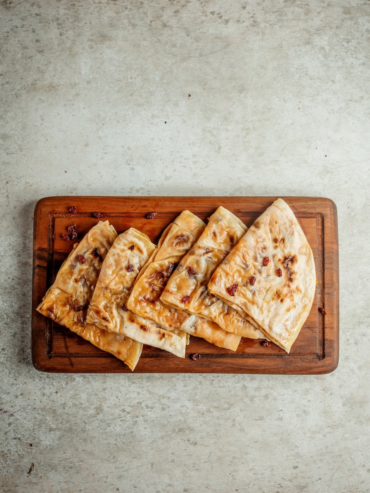 - Лепешку разрежьте вдоль, распределите сырную смесь на нижнюю половину, накройте второй половиной и плотно прижмите.