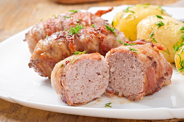- В каждом клубне необходимо сделать углубление и наполнить его мясной начинкой из смеси свинины, говядины и лука или по вашему предпочтению).