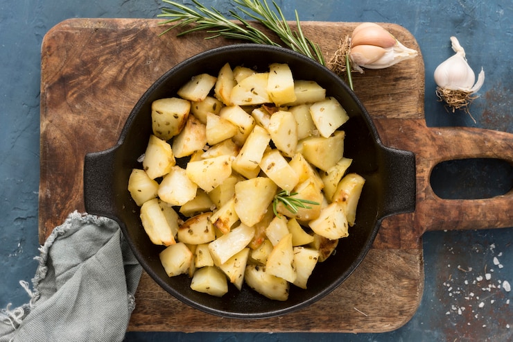 - Картофель следует нарезать дольками, а шампиньоны – пластинками.