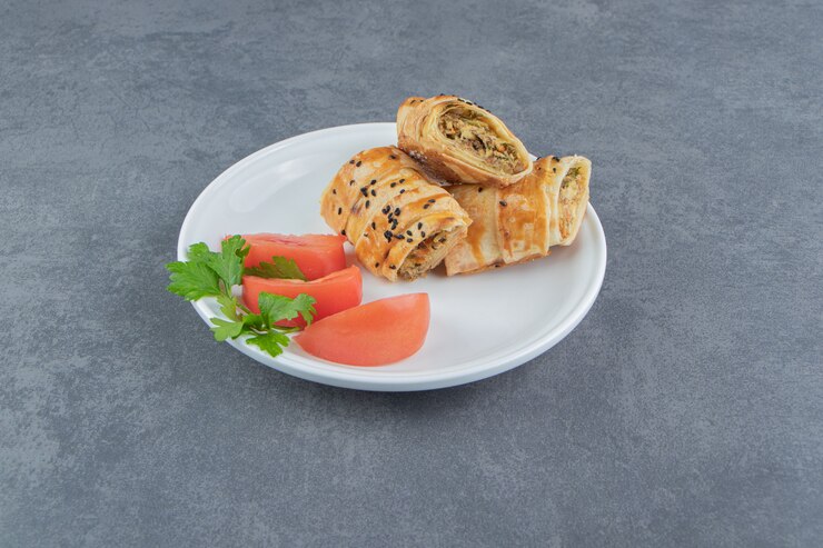 - Ножницами нужно сделать равномерные надрезы по поверхности рулетов, чтобы тесто стало текстурным и просматривалась начинка.