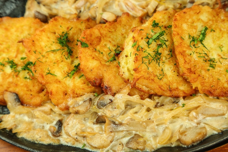 - Добавляем соль и перец, а также смазываем сметаной.