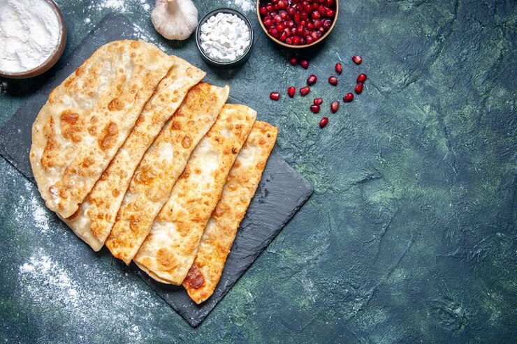 - Разрежьте лаваш на маленькие квадраты. На одну половинку каждого квадрата намажьте тонким слоем фарша (около столовой ложки). Другой половинкой прикройте. Слегка прижмите руками.