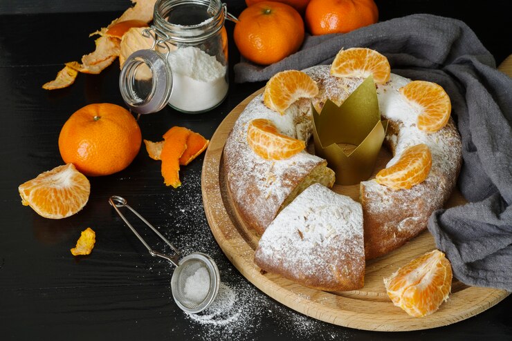 - Вынуть готовый пирог из духовки и проверить его готовность с помощью деревянной шпажки, после чего пропитать мандариновым сиропом.