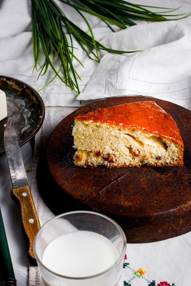 - Горячий пирог поливают молоком. Молоко можно использовать как комнатной температуры, так и немного подогретое.