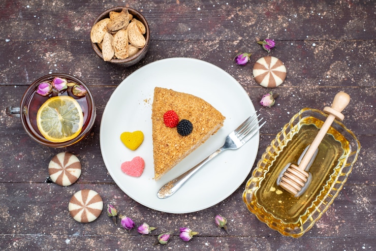 Я с удовольствием пеку медовик на кефире. Для прослойки коржей можно использовать любой крем, но мне особенно нравится масляный крем с цитрусовыми нотками в этом торте.