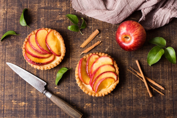 - Яблоки необходимо очистить и нарезать на небольшие кусочки. Затем их следует сбрызнуть лимонным соком и перемешать. Добавьте сахар, корицу и мускатный орех, после чего снова перемешайте. На большую сковороду положите сливочное масло, поставьте на огонь и выложите яблоки. Перемешайте, накройте крышкой и тушите на медленном огне около 3-4 минуты, чтобы яблоки пустили сок. Добавьте ванильный экстракт (если используете ванильный сахар, добавьте его вместе с сахаром). Введите кукурузный крахмал, аккуратно перемешайте и дайте жидкости загустеть в течение минуты-двух, после чего снимите сковороду с огня. Переложите яблочную массу в миску и остудите до комнатной температуры.