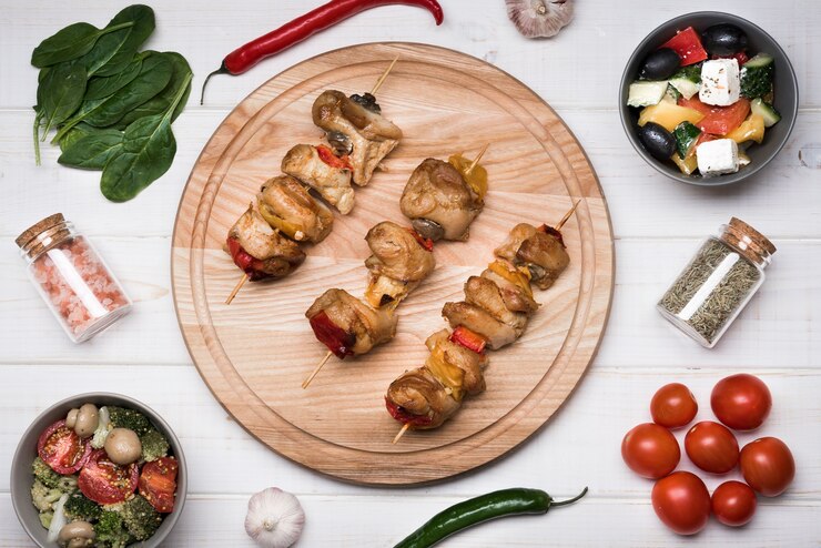 - Наденьте на шпажки и запекайте в духовке. Сначала выдержите 15 минут при температуре 180 градусов, затем увеличьте температуру до 200 градусов и запекайте еще 5 минут.