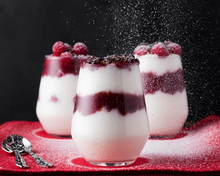 - Полезно: Малина содержит множество витаминов и антиоксидантов. Молоко – ценный источник кальция и белка.