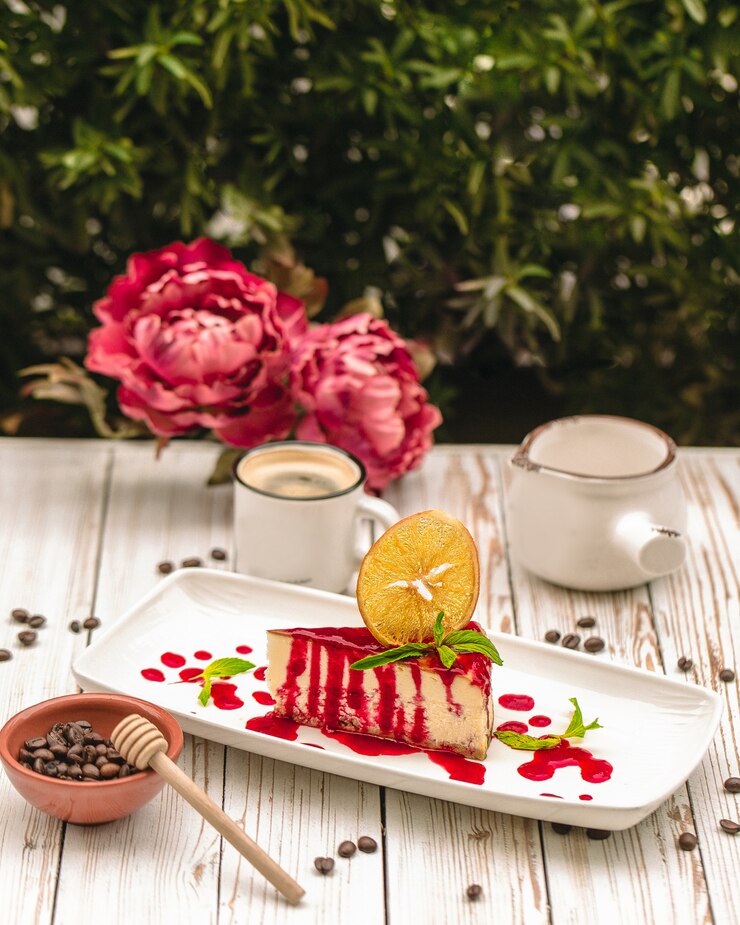 - Из формы вынуть застывший чизкейк и посыпать его кокосовой стружкой (70 г) с верхушки и по краям.