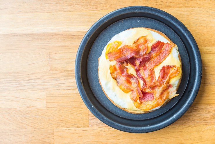- Выложите колбасу и помидоры в формочки для кексов, залейте их яичной смесью и посыпьте сыром.