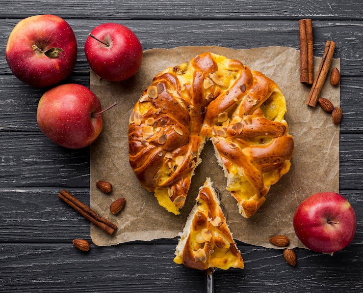 - Яблоко – 4 шт. (3 в пирог, 1 на украшение)
