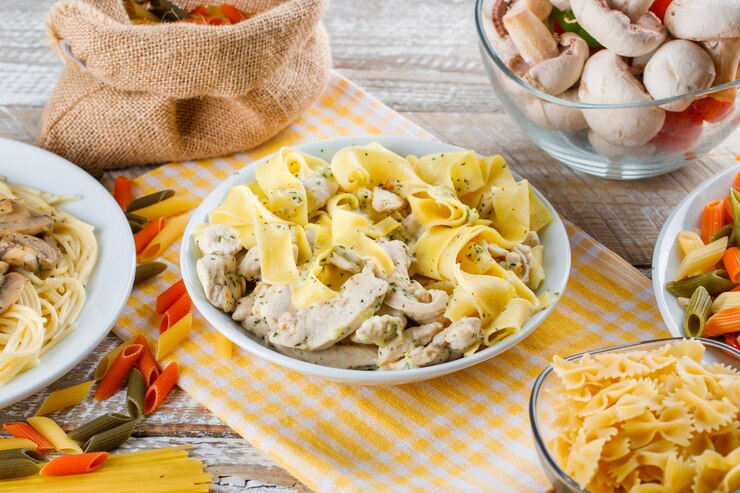 - Необходимо тщательно смешать макаронные изделия, курицу и смесь зелени. После этого блюдо следует выложить в тарелки и украсить стружкой лимона и пармезаном.