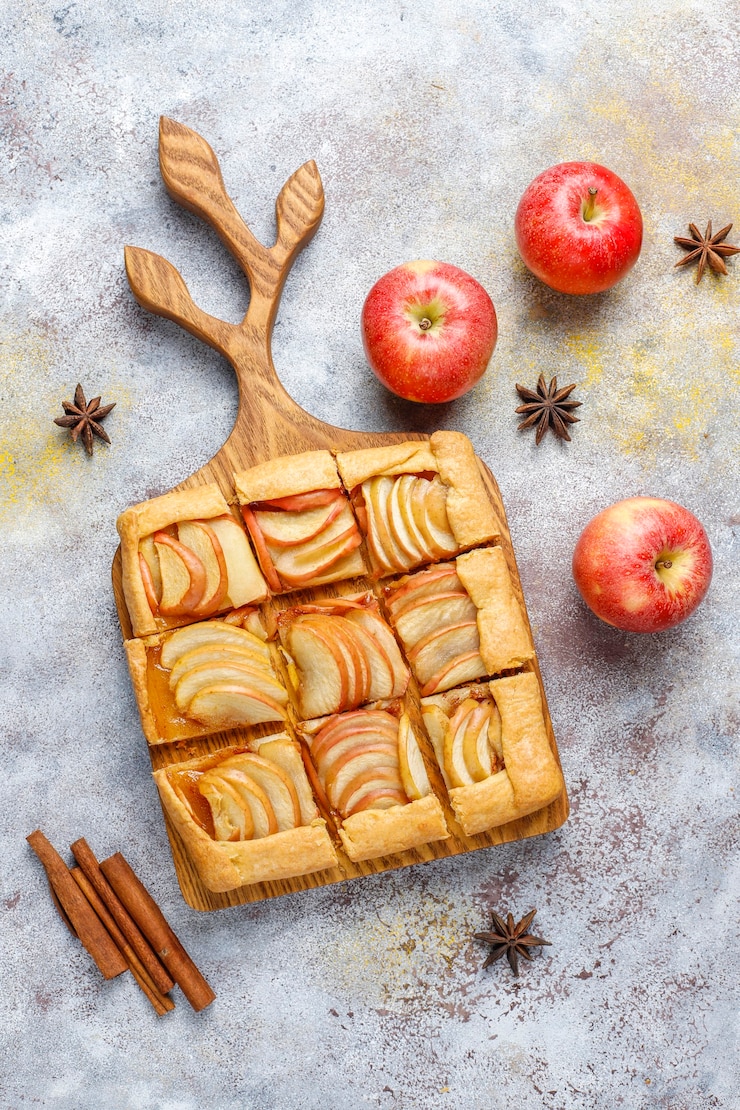 - Для приготовления начинки яблоки следует очистить от кожуры, разрезать пополам и удалить сердцевину. Затем их нужно залить лимонным соком и нарезать небольшими кубиками. В сковороде растопите сливочное масло, добавьте яблоки, посыпьте сахаром и корицей. Готовьте на слабом огне в течение 5-8 минут, время от времени помешивая. Начинка должна стать мягкой, но не превратится в пюре. Снимите с огня и дайте остыть. К остывшим яблокам добавьте измельченный миндаль и тщательно перемешайте.