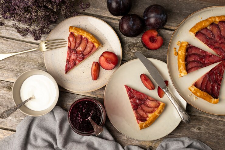 В качестве альтернативы кефиру можно использовать сметану, йогурт, простоквашу или ряженку. При замесе тесто получится очень липким, однако после выдержки в течение 30 минут оно станет менее липким и более эластичным. Сливы можно заменить персиками, нектаринами, абрикосами, яблоками или грушами. Крахмал, добавленный в начинку, способствует загущению сока.
