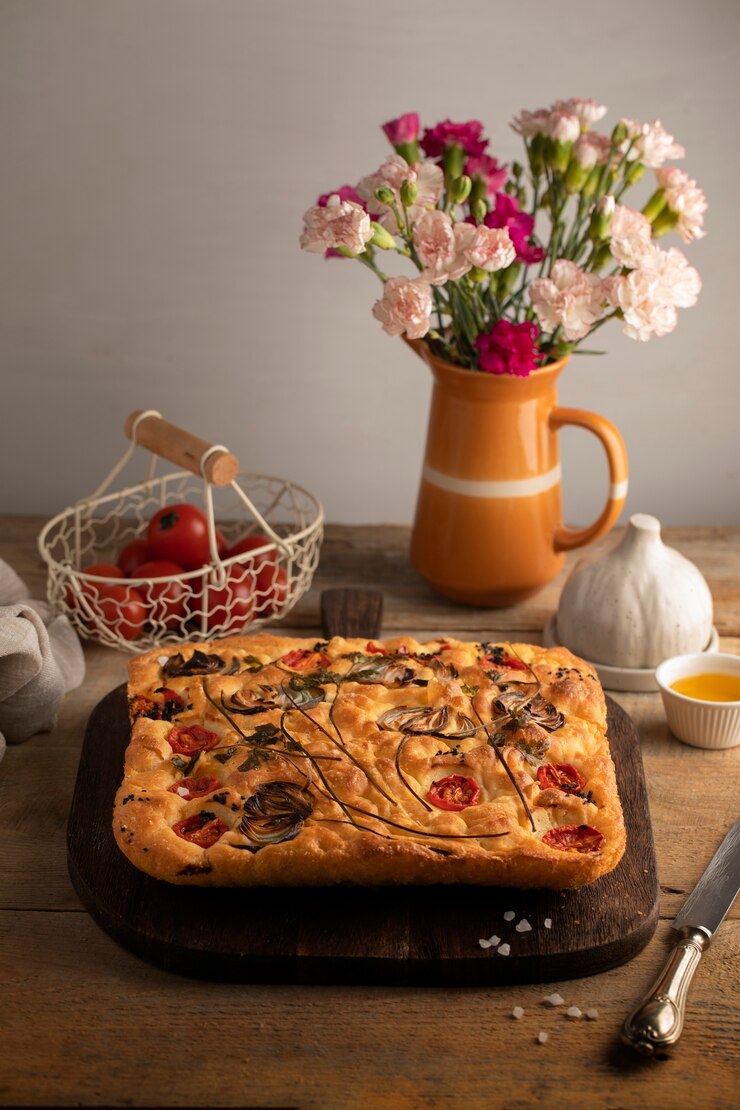 - Форму для выпечки диаметром 26 см смазать оливковым маслом и выложить дно пергаментной бумагой.