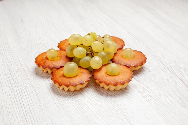 - Извлеките заготовку. Не отключайте духовку. Снимите груз и бумагу. Посыпьте дно крахмалом, чтобы предотвратить вытекание сока из ягод, которые могут лопнуть во время выпечки. Положите на дно заранее вымытый и обсушенный виноград. Сверху распределите начинку. Разровняйте поверхность.