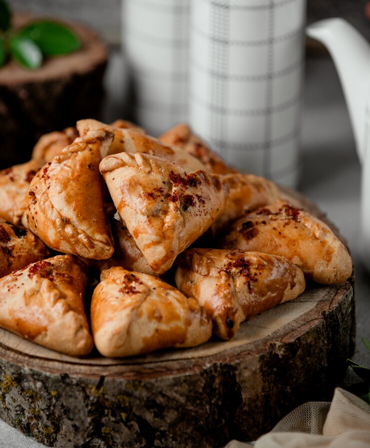 - Яйцом смажьте все пирожки и выпекайте в духовке при 190 градусах в течение 30 минут.