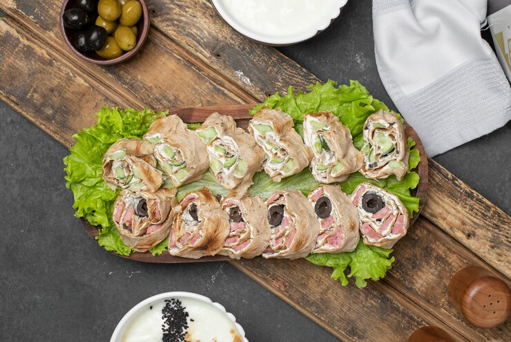 - Намажьте ломтики индейки майонезом, распределите поверх них приготовленную смесь из грибов с гречкой и сверните в рулет.