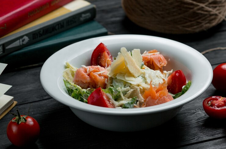 Этот салат порадует разнообразием вкусов и ароматов, а также получится сочным и легким. Приготовить его можно всего за 10 минут. После употребления такого салата не возникнет ощущения переедания.