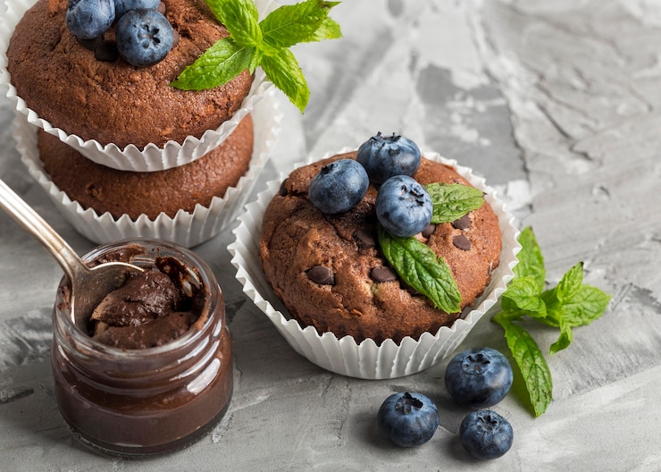 - Тесто следует распределить по формам для маффинов, которые предварительно выстелены бумажными формочками, заполняя их примерно на две трети объема.