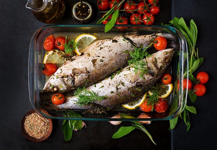 - После маринования рыбу следует выложить в форму и запекать в духовке, разогретой до 220 градусов, в течение 20 минут.