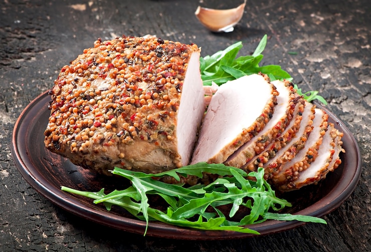 - Мясо запекается в духовке, разогретой до 180 градусов, в течение часа. После этого его извлекают, фольга снимается, и мясо запекается еще 15–20 минут для получения румяной корочки.