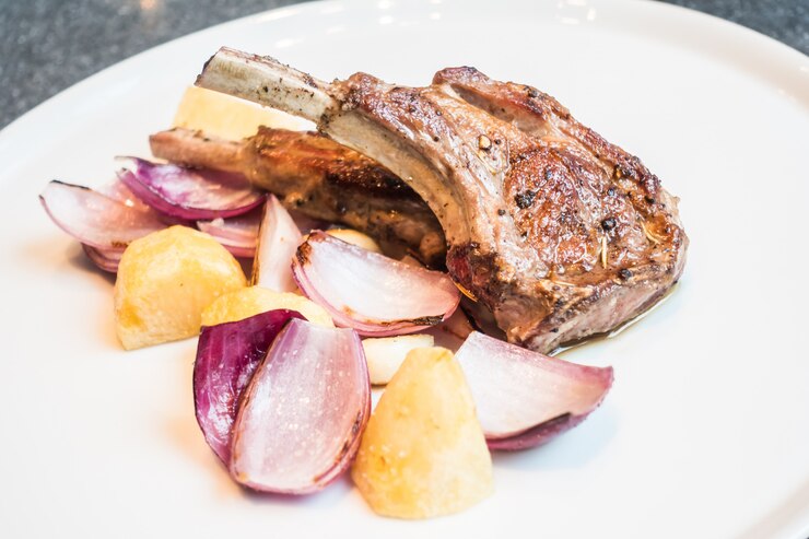 - Обжаренные рёбра выкладывают на доску и подают вместе с поджаренной редиской.