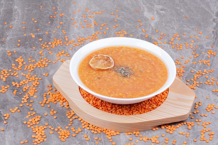 Наш ароматный осенний томатный суп с чечевицей готов.