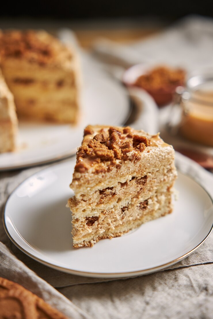 - Покройте бока и верх торта кремом. Поставьте торт в холодильник на 4 часа.