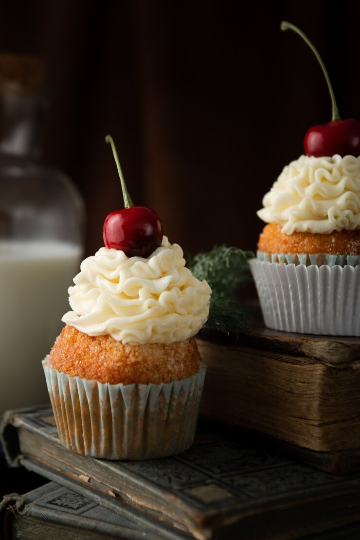 После остывания шапочки капкейков осядут и станут почти ровными. Не передерживайте капкейки в духовке, согласно рецепту они должны быть светлыми. Для достижения стабильного результата рекомендуется использовать кухонные весы или мерные ложки при добавлении соды и разрыхлителя. Все ингредиенты необходимо подготовить заранее и довести до комнатной температуры. Молоко должно быть немного теплее, чем температура тела. Один средний яичный белок весит от 28 до 35 грамм.