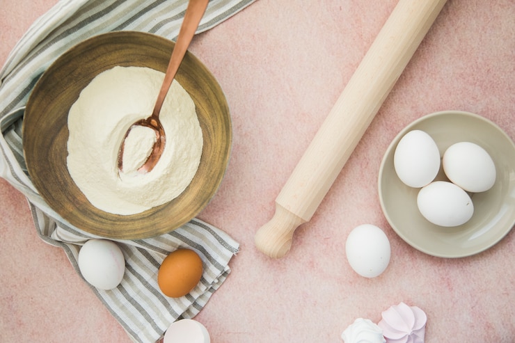 - Определите вес яиц. Важно получить точный вес, исключив скорлупу. Для формы диаметром 18 см я использовала 4 крупных яйца. Их общий вес составил 244 грамма. Следует помнить о соотношении ингредиентов для бисквита: количество муки и сахара должно быть в 1,7 раза меньше веса яиц. Делим 244 грамма (вес яиц) на 1,7 и получаем 143,5 грамма. Округляем согласно математическим правилам. Таким образом, для приготовления потребуется по 144 грамма муки и сахара.