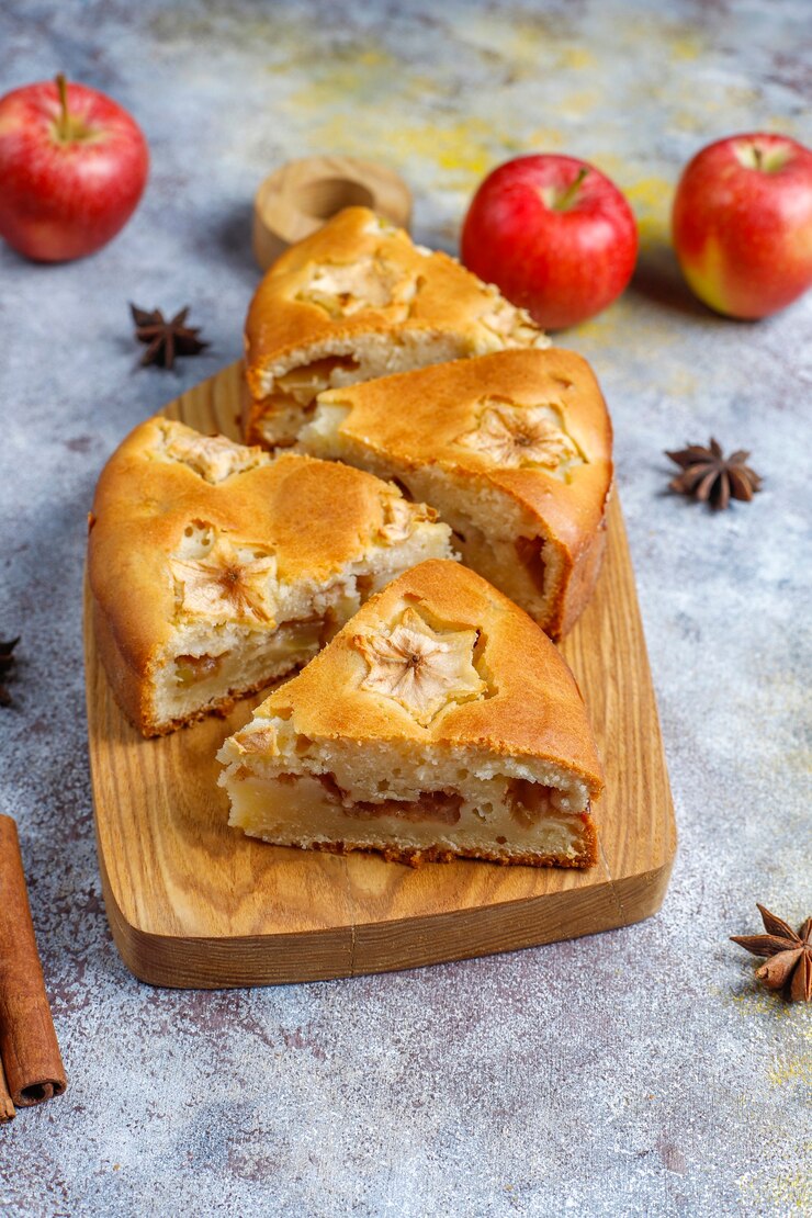 - Яблоки укладываются на дно формы, поливаются лимонным соком и заливаются тестом.