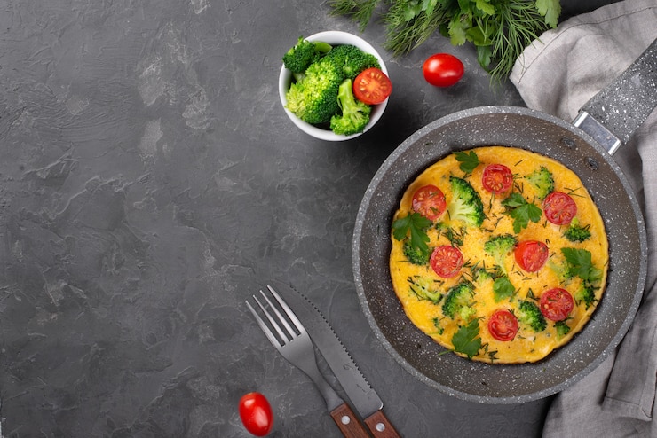 Для приготовления утренней еды я использую разнообразные летние овощи, такие как баклажаны, кабачки, репчатый и зеленый лук, помидоры и болгарский перец.