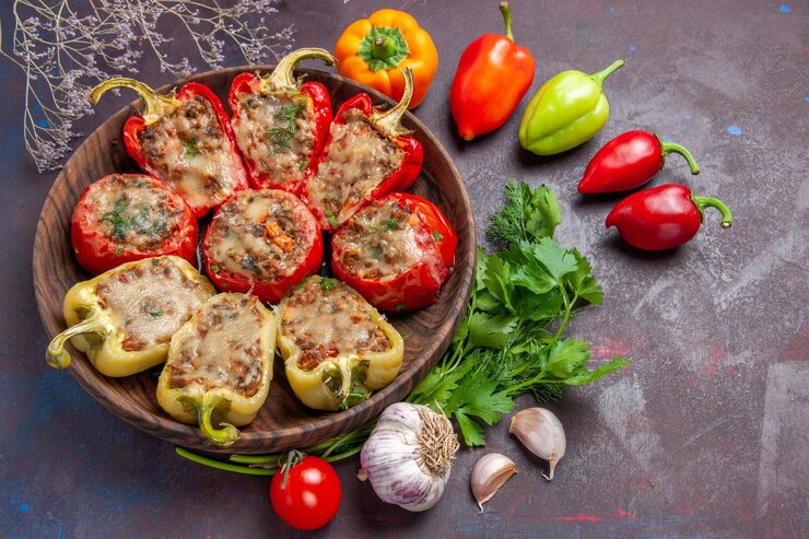 - Начиненные перцы взвешиваем и помещаем в форму.