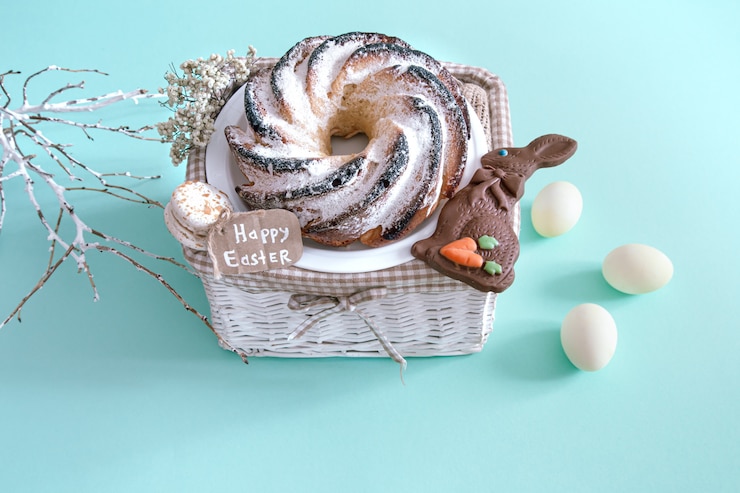 - Аккуратно выложите пасхальную выпечку на блюдо и украсьте ее.